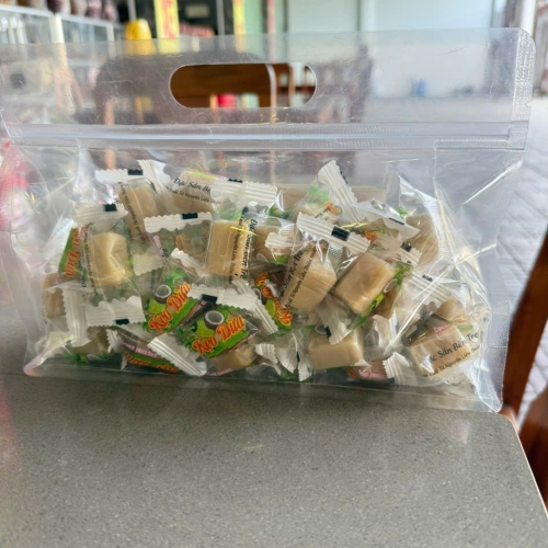 Kẹo dừa có hương vị ngọt ngào, thơm lừng từ dừa, kết hợp với độ mềm mịn của sữa và đường, tạo ra một món ăn vặt hấp dẫn và dễ ăn.