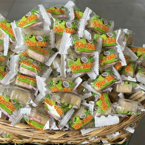 Kẹo dừa được làm từ các nguyên liệu chính như dừa tươi, đường, sữa đặc và một số thành phần khác. Kẹo dừa có hương vị ngọt ngào, thơm lừng từ dừa, kết hợp với độ mềm mịn của sữa và đường, tạo ra một món ăn vặt hấp dẫn và dễ ăn.