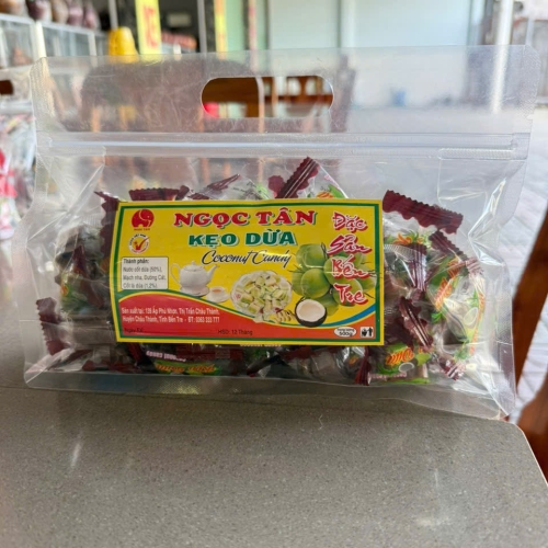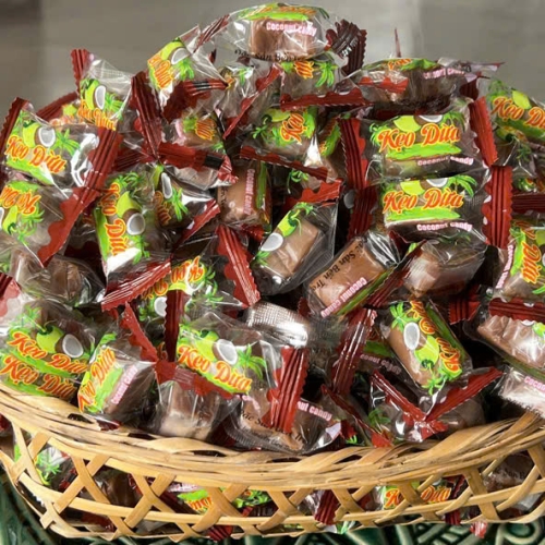 Kẹo dừa ca cao là sản phẩm mang hương vị đặc trưng của kẹo truyền thống với vị dừa hòa quyện cùng vị cacao thơm ngon và ngọt dịu. Sản phẩm có thành phần được làm từ nước cốt dừa, mạch nha, đường cát, bột cacao, kẹo mang lại cho người tiêu dùng sự an toàn và chất lượng cao. Sản phẩm được đóng gói đẹp mắt tiện dụng, dễ dàng bảo quản và cất giữ. Rất thích hợp làm quà tặng và mang theo trong những chuyến đi du lịch, dã ngoại.