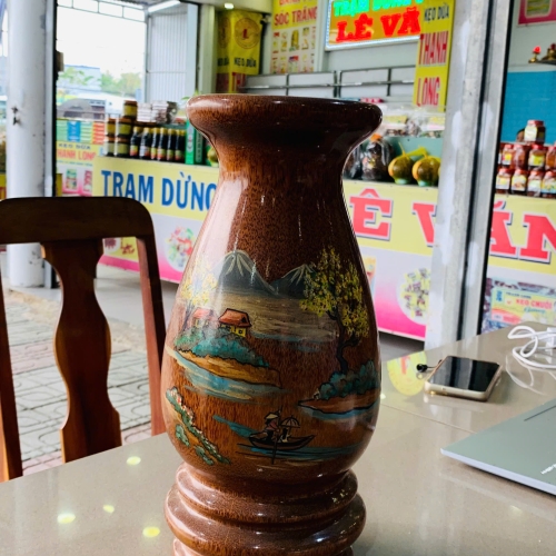 Lọ hoa họa tiết đồng quê là một tác phẩm thủ công mỹ nghệ tinh xảo, mang trong mình vẻ đẹp mộc mạc nhưng đầy sức cuốn hút. Với hình dáng tròn trịa hoặc bầu, chiếc lọ thể hiện sự hài hòa trong từng đường nét, từ phần cổ cao đến thân bình. Các họa tiết trên lọ hoa được vẽ tay tỉ mỉ, là những hình ảnh gợi nhớ đến cảnh vật yên bình của làng quê như cánh đồng lúa chín, đàn trâu gặm cỏ hay những bông hoa dại nở rộ.